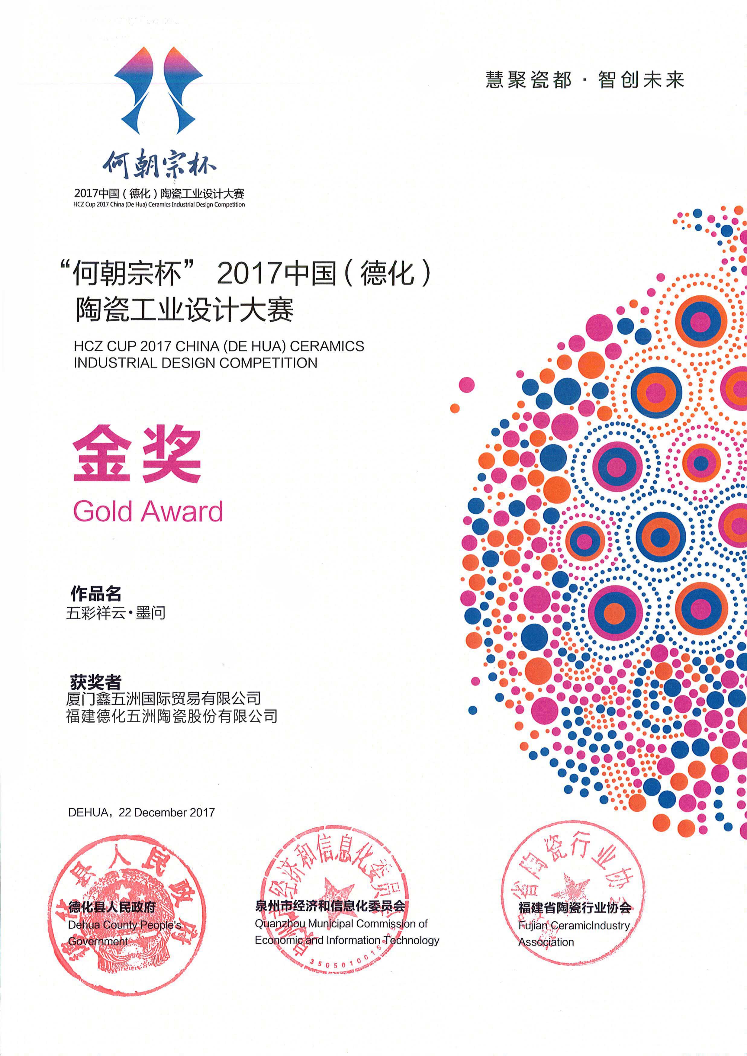 2017年12月 “何朝宗杯”2017中國(德化)陶瓷工業(yè)設(shè)計大賽金獎 20171222(邱亭毓)