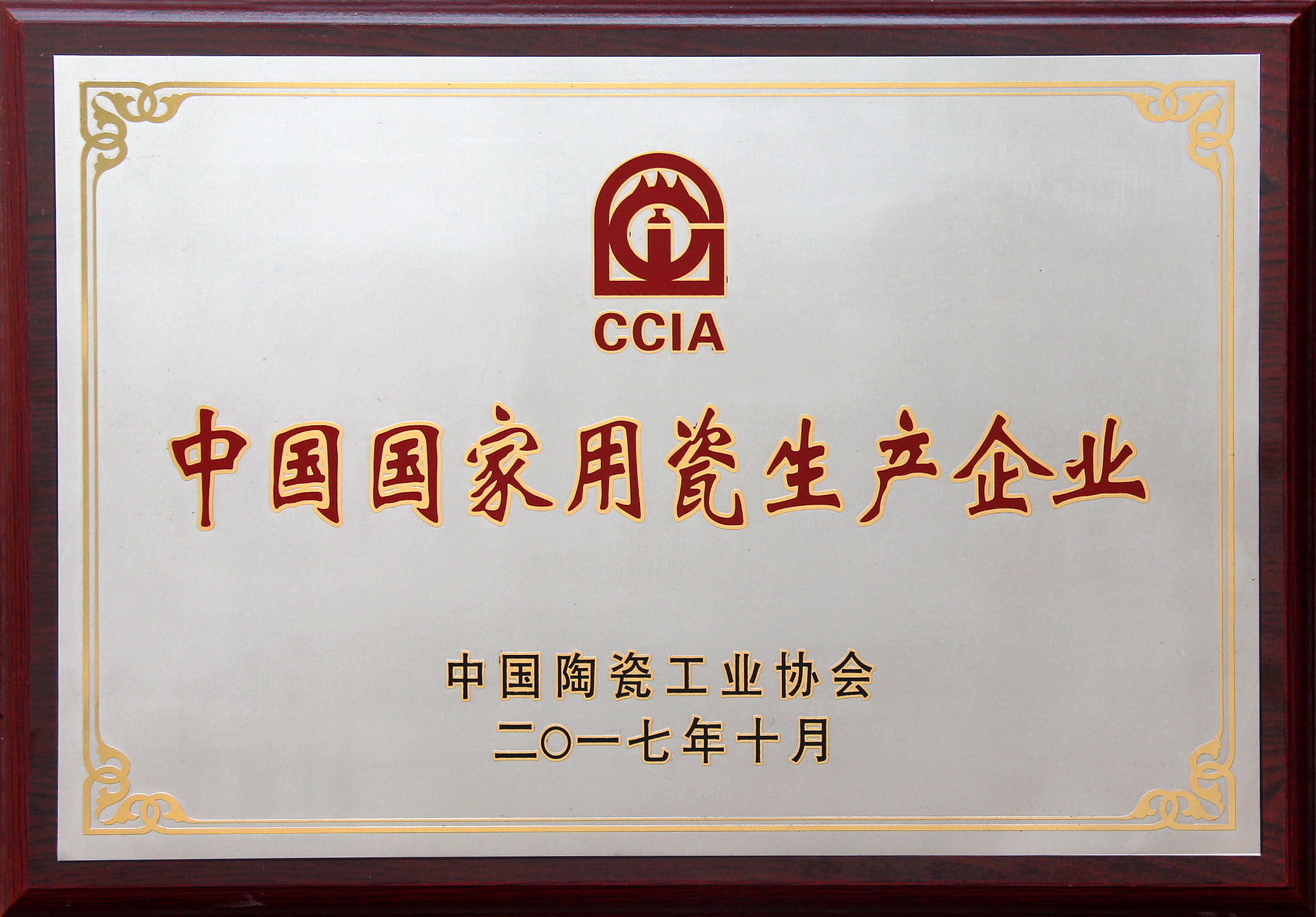 2017年10月 中國國家用瓷生產(chǎn)企業(yè) 中國陶瓷工業(yè)協(xié)會