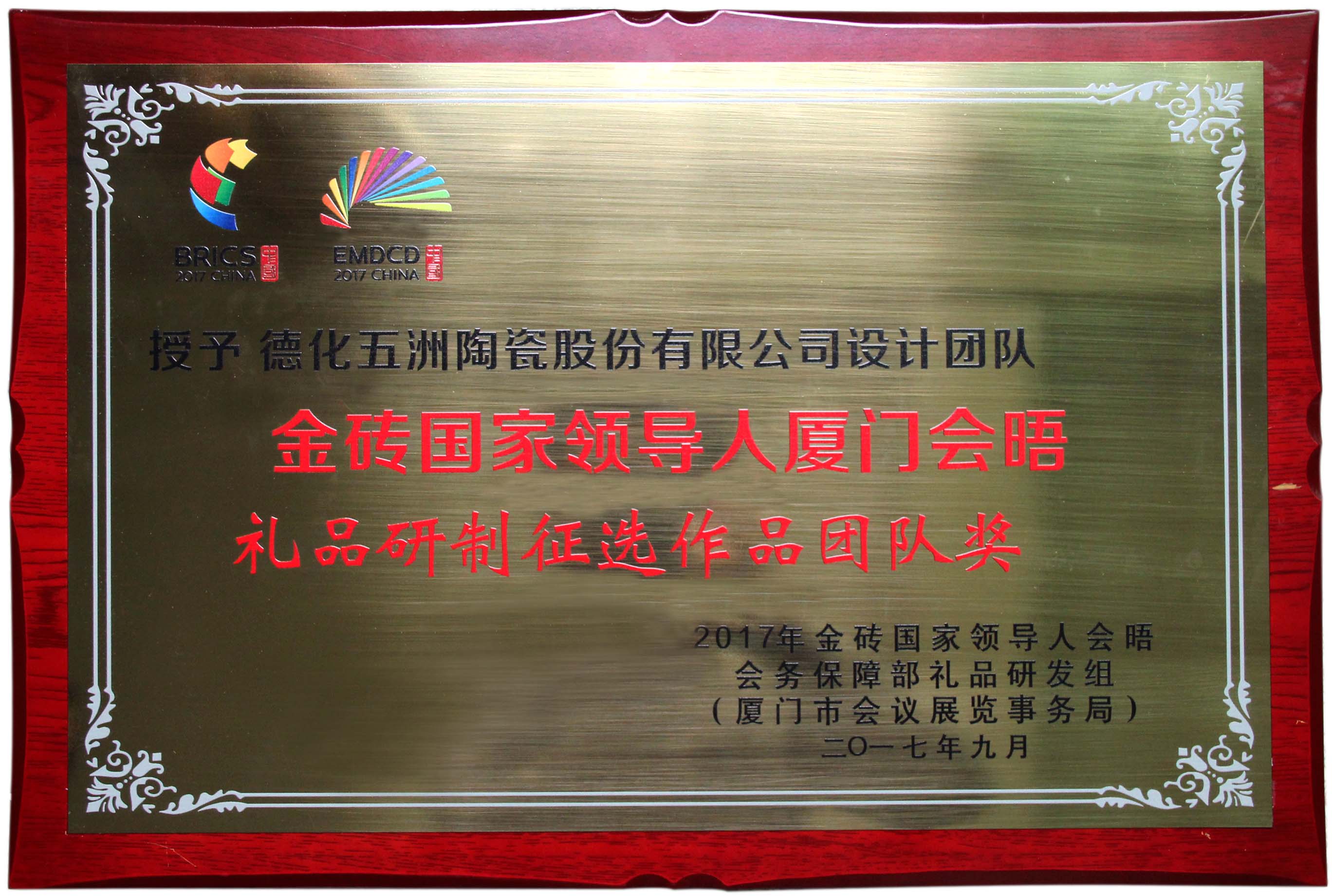 2017年9月 金磚國家領(lǐng)導(dǎo)人廈門會晤 禮品研制征選作品團(tuán)隊獎