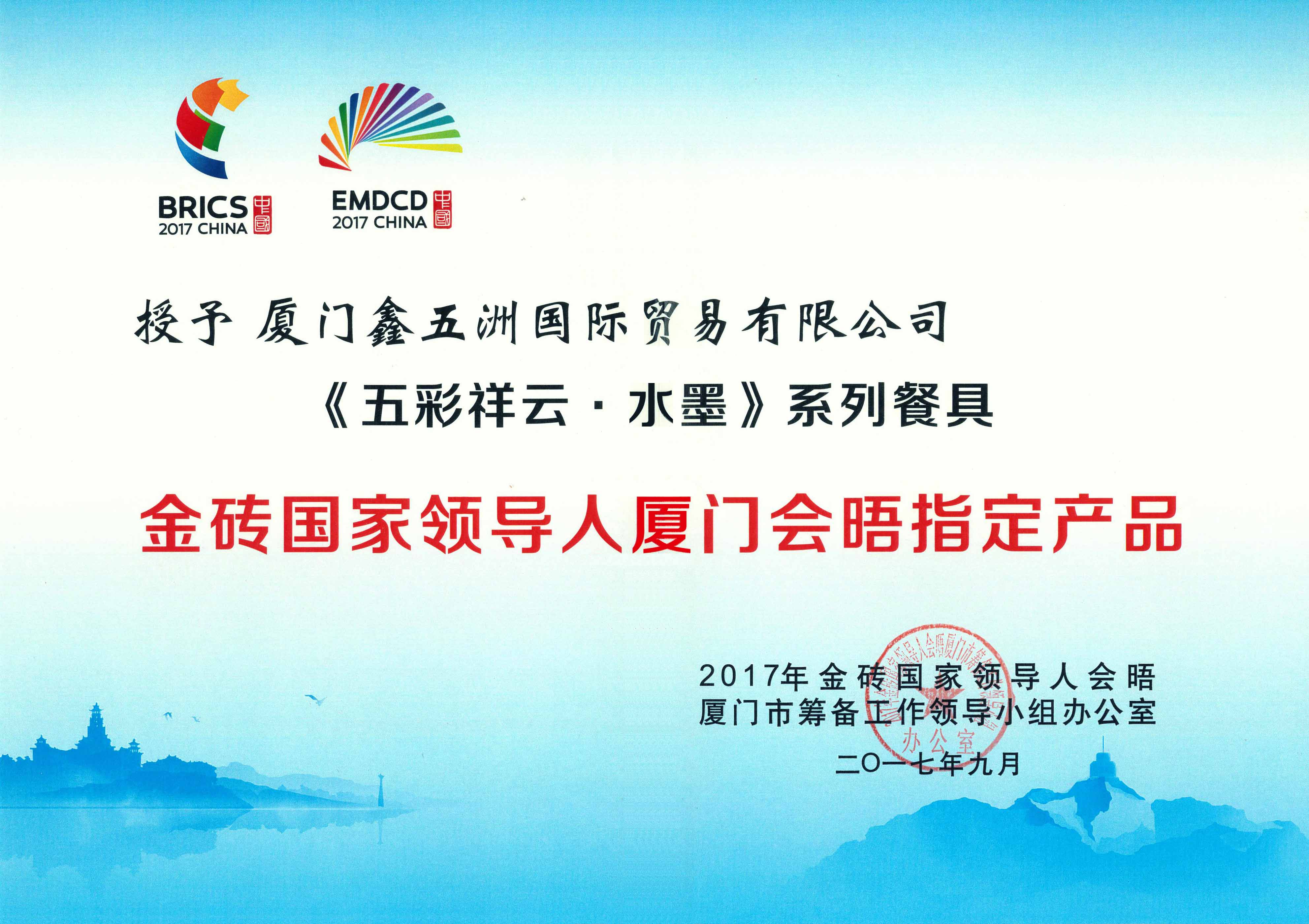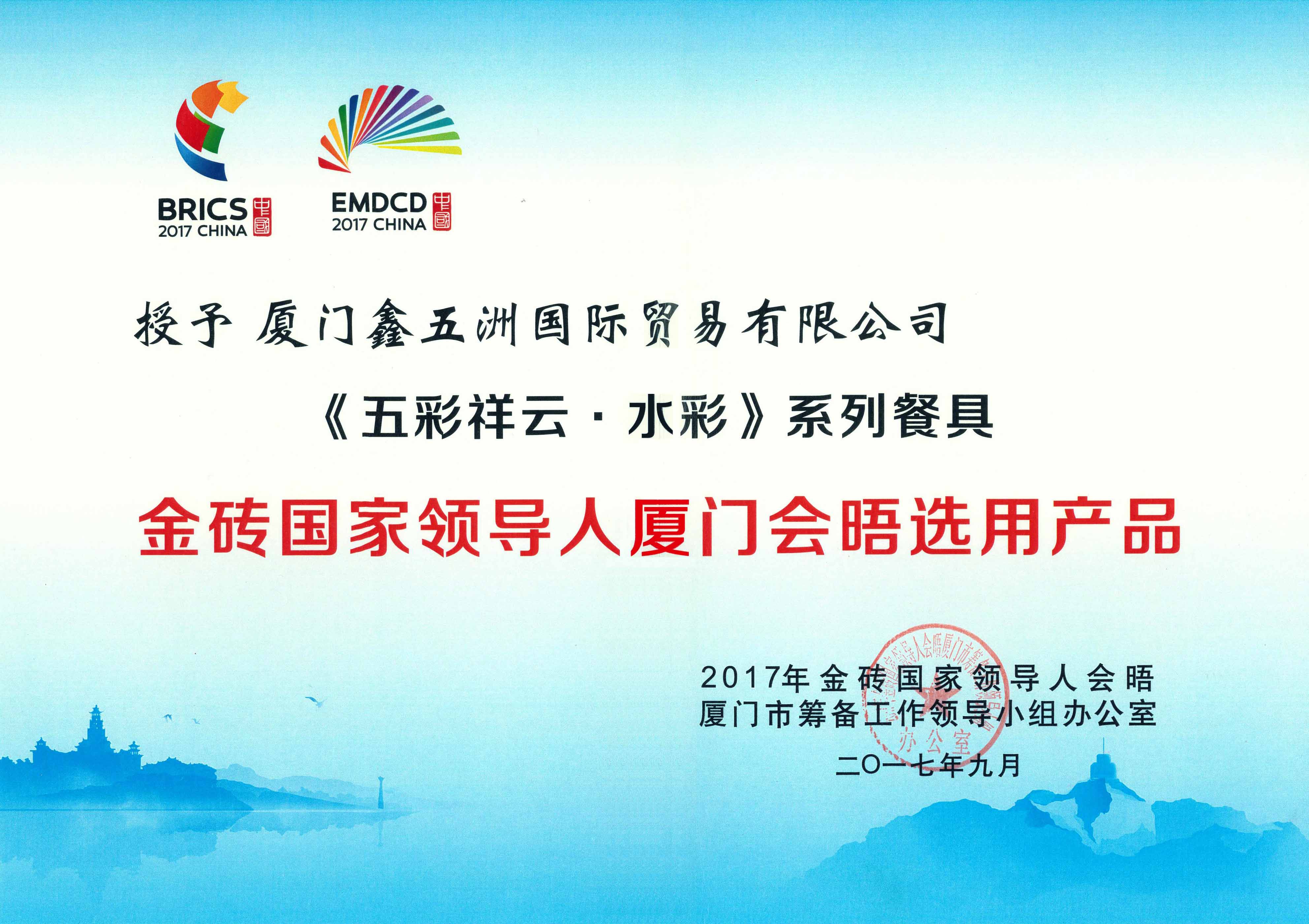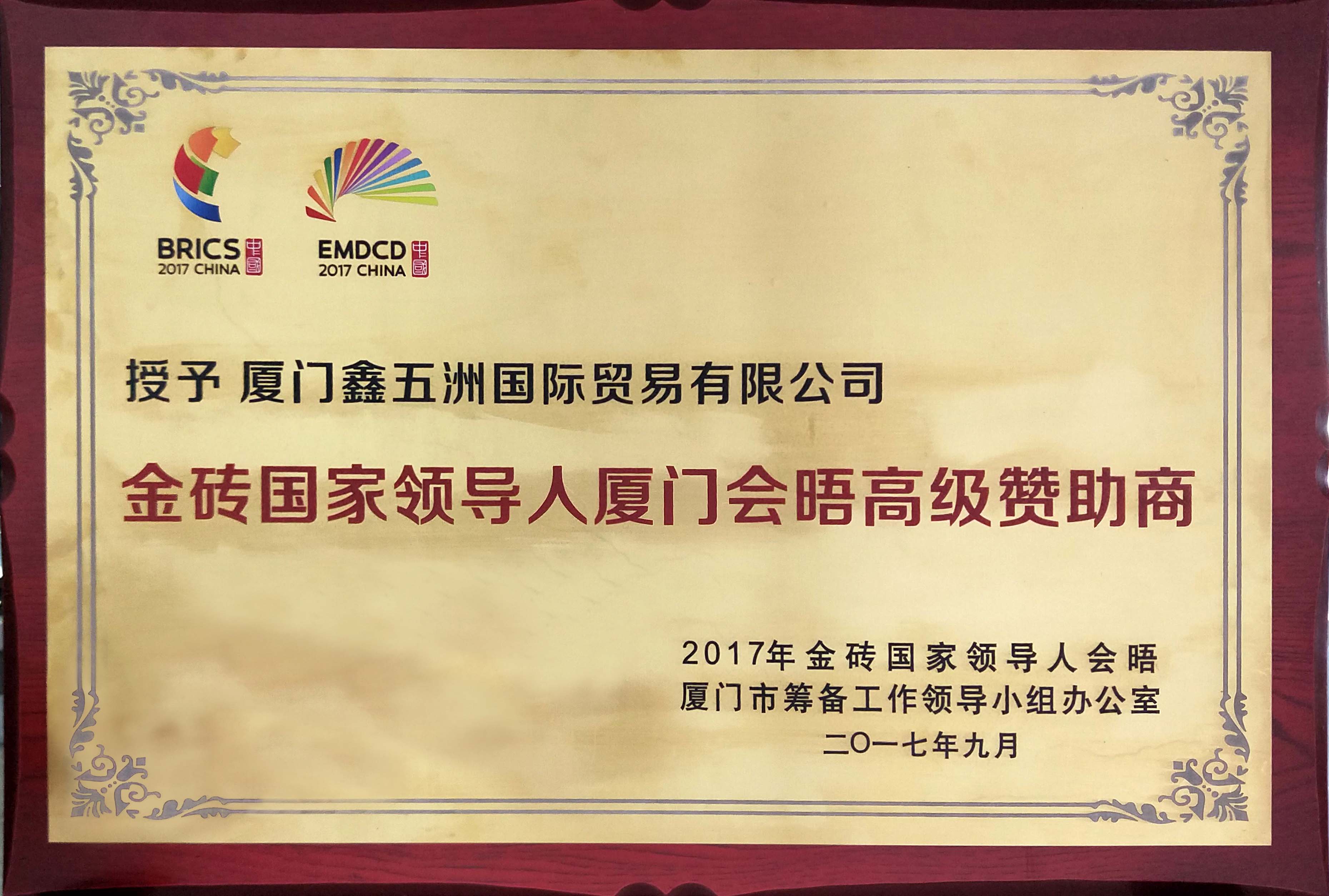 2017年9月 金磚國家領(lǐng)導(dǎo)人廈門會晤高級贊助商-廈門鑫五洲